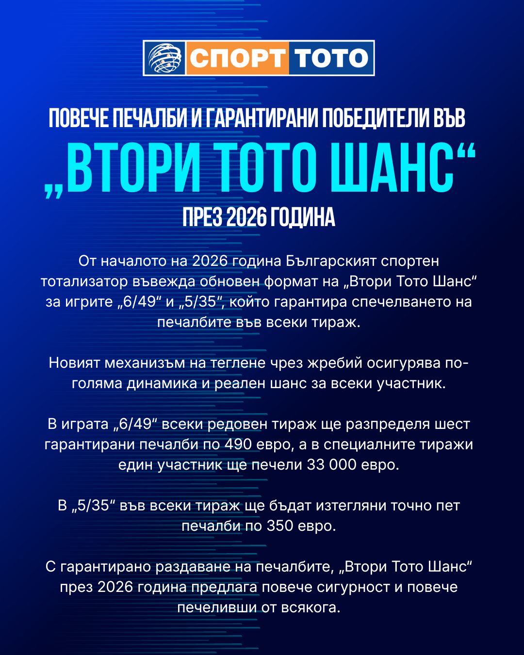 От началото на 2026 година Българският спортен тотализатор въвежда обновен